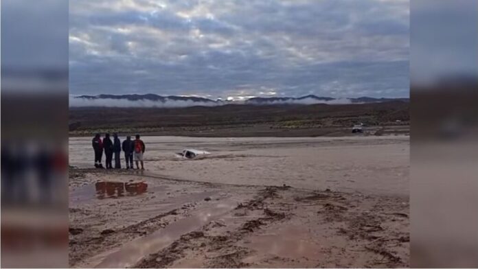 En los últimos días, las lluvias provocaron la crecida del Río San Juan del Oro y una camioneta quedó varada teniendo que ser extraída por varias personas.
