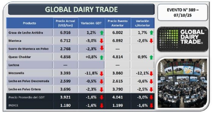 Cabe destacar que a nivel general también hubo bajas en el mercado lácteo, reflejada también en la baja del índice general de precios del GDT.