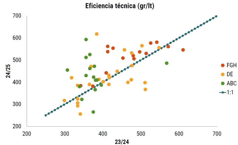 “Aquellas empresas que en la campaña 2024/25 no les fue mejor que en la 2023/24, tienen que tener muy bien identificado el porqué, dado que el último ciclo fue muy bueno para la mayor parte de los tambos”, resalta Ignacio.