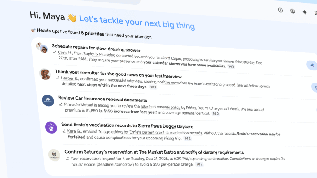 En el ejemplo proporcionado por Google sobre cómo podría funcionar esta bandeja de entrada de IA en Gmail, la nueva pestaña toma el contexto de los mensajes del usuario y le sugiere cambiar su cita con el dentista, responder a una petición del entrenador de su hijo y pagar un recibo antes de la fecha de corte. En la pestaña “AI Inbox” también aparece una lista de temas importantes que vale la pena consultar, ubicada debajo de los elementos de acción en la parte superior. Cada tarea sugerida y cada tema están vinculados al correo electrónico original para ofrecer más contexto y facilitar la verificación.