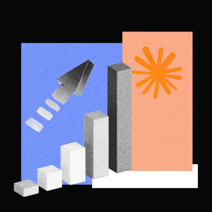 Gráfico de barras y flecha subiendo
