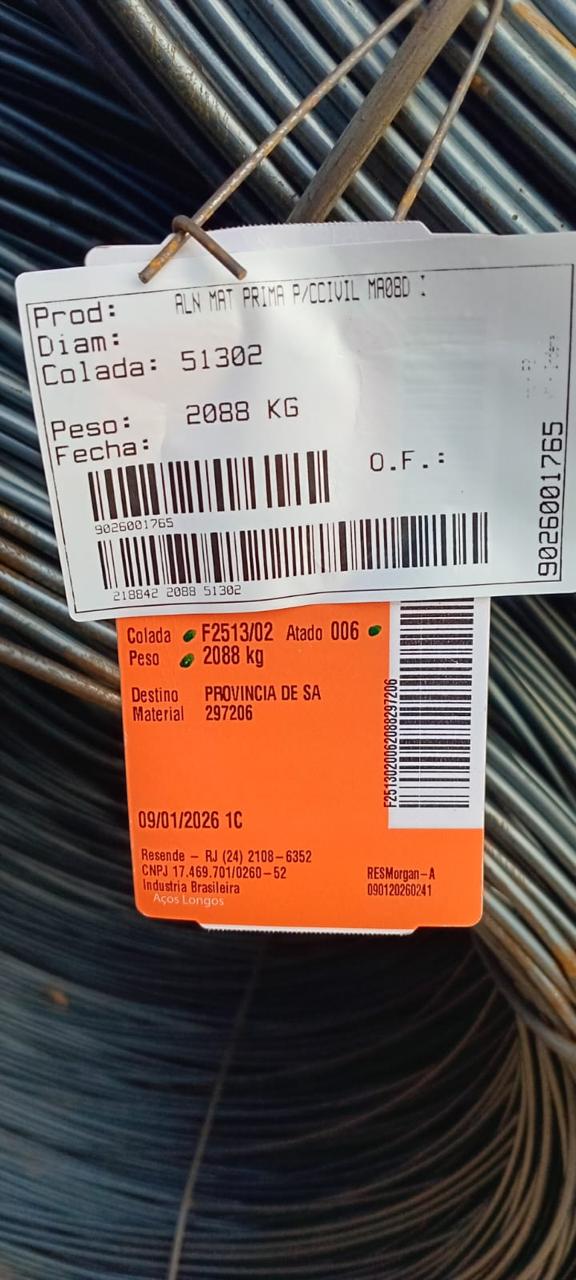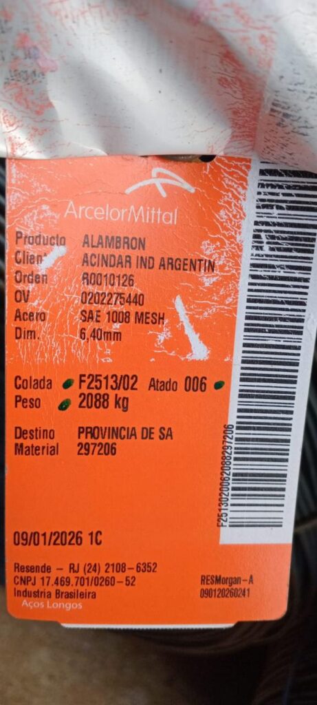 El acero de producción brasilera está marcado en las etiquetas y empezará a ser repartido en los próximos días. Se trata de Alambrón 640, uno de los subtipos que se producían en el país y que ahora Acindar resolvió traer importado.