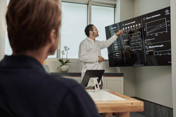 Todo inicia con un diagnóstico avanzado. No te preguntan simplemente “cómo te sientes”; te someten a un escáner corporal para analizar composición, signos vitales, salud cardiovascular, niveles de estrés y función cognitiva. Con esos datos en mano, un nutricionista diseña un plan a medida.