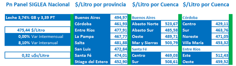 Precios SIGLEA noviembre 2025 $/litro de leche